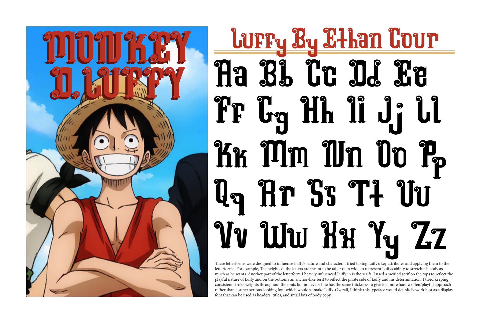 Custom typeface design based on Monkey D. Luffy from One Piece